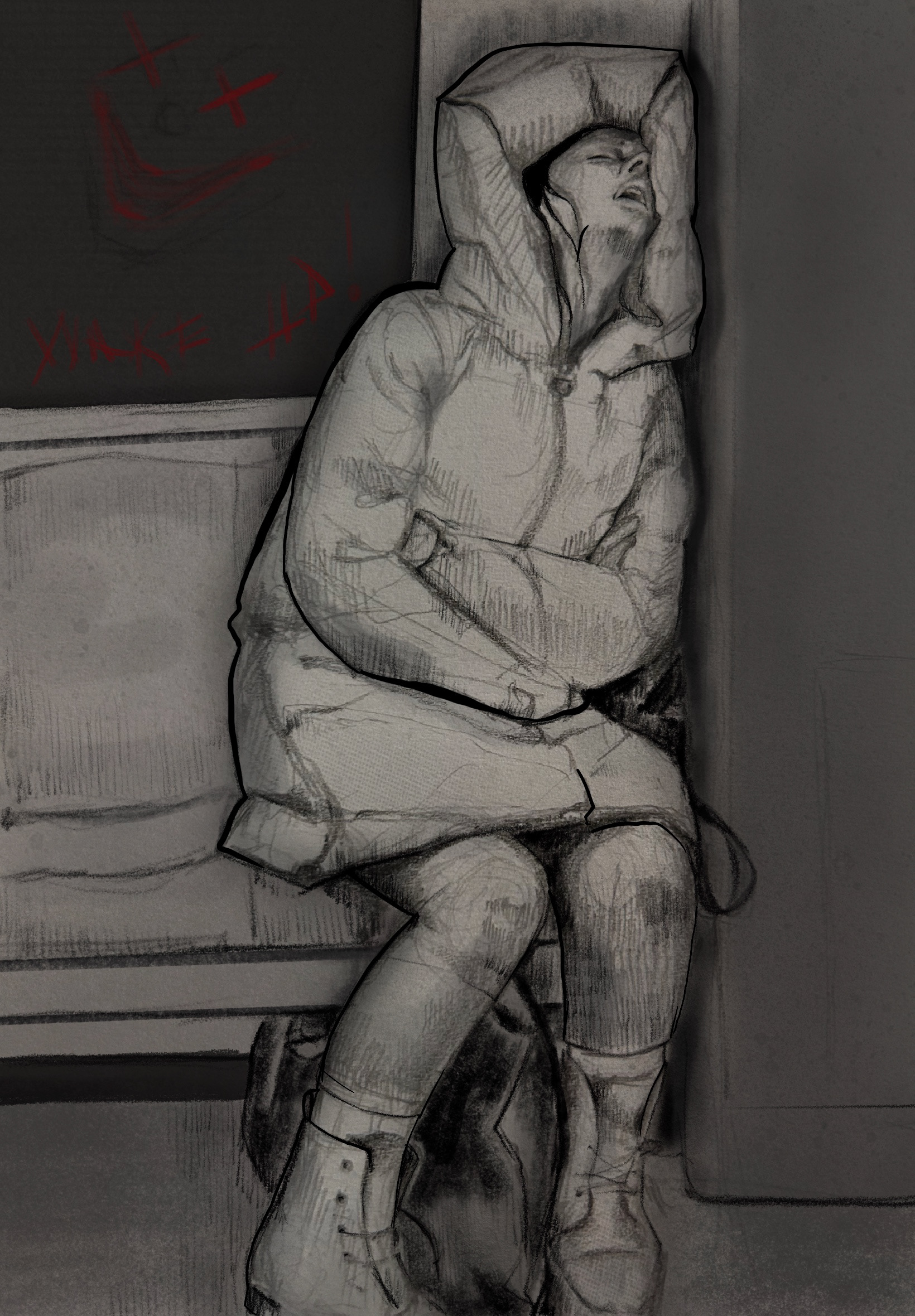 That day, I was going to my work by metro. As usual, I had my sketchbook with me; I enjoy sketching figures during public transportation rides. When I took my seat, I noticed a woman in front of me. She was deeply asleep. Her sleeping state brought a smile to my face.